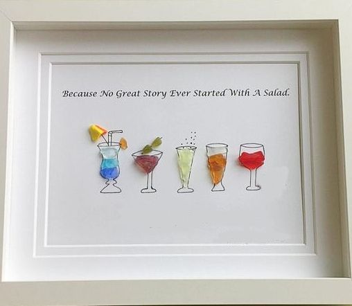 Transforma tu espacio con esta colorida obra de arte con cristales de mar. ¡Seguro que cada noche empieza con mucha diversión con estos vasos llenos! 🎨🍾🥂