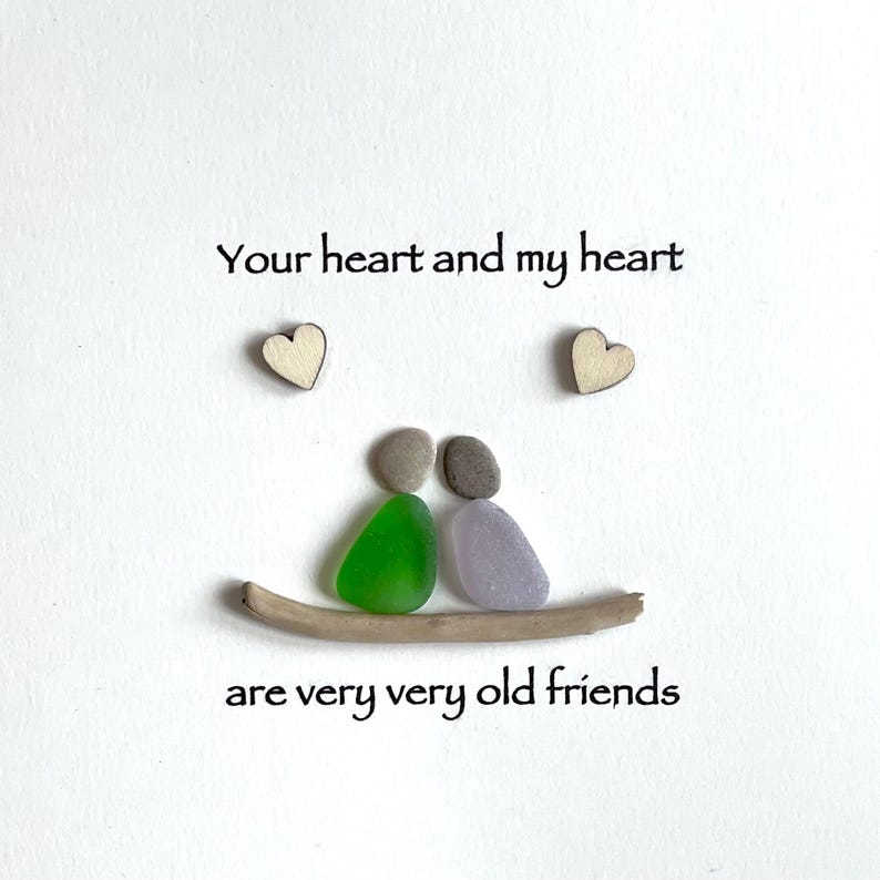 Arte de la amistad en vidrio marino "Tu corazón y mi corazón son viejos amigos"
