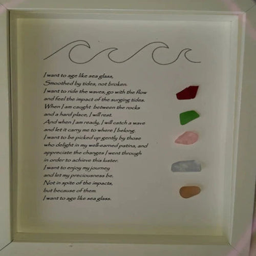 ✨ Poema único enmarcado sobre vidrio marino : " Para envejecer como el vidrio marino" - Regalo de casa de playa personalizado para ella, mamá o cumpleaños importante.